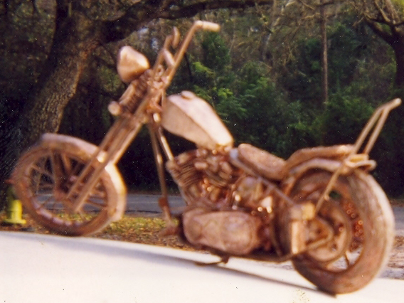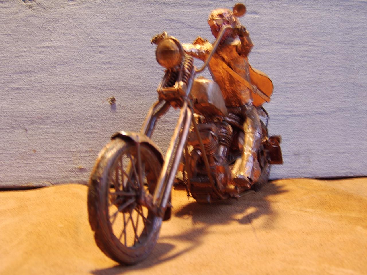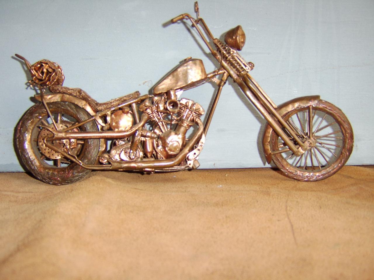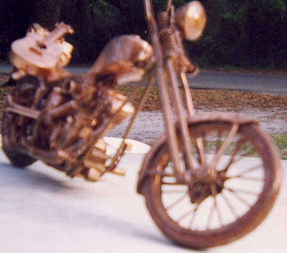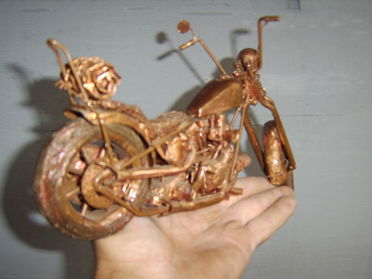 Self taught in the art of copper sculpting "The Cycles of Evolution" reveal the evolution of my technique. I have never used a torch in my work. This piece not only represents the story of evolved technique, but also represents the art of inovation and an american dream derived from the automotive revolution, it represents a life free of cares and worries, it represents me ridding into the sunset, with my sleeping bag and guitar at hand,never to return again.