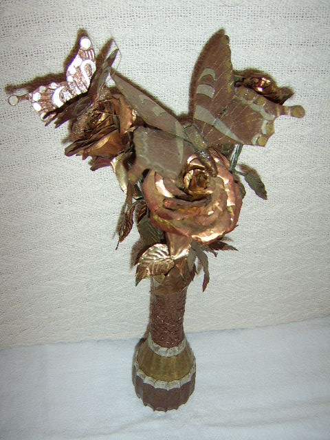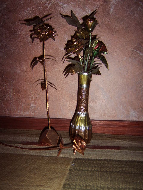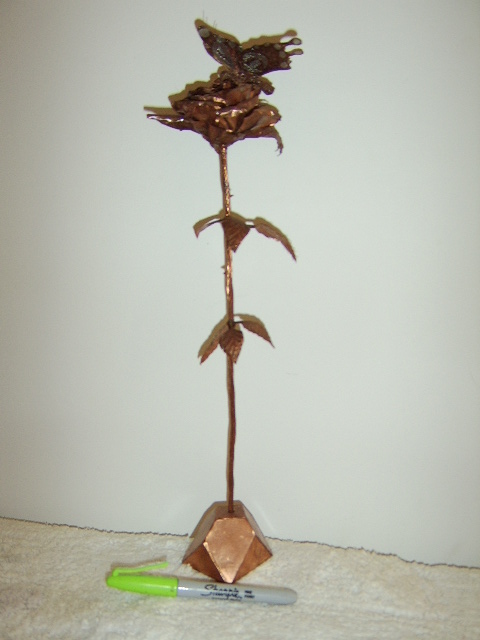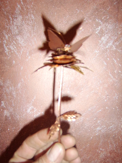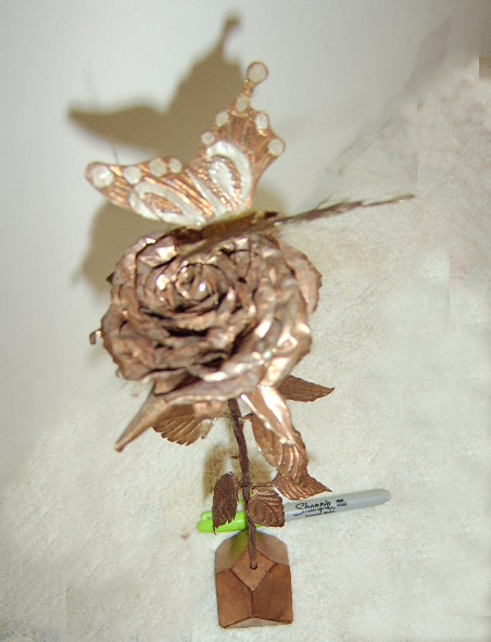 These copper rose's and butterflies are unique in design,they are cherished by whomever receives them. Made available upon request.Contact Lonnie@copperhope.com <Click on an image below to view a larger image>