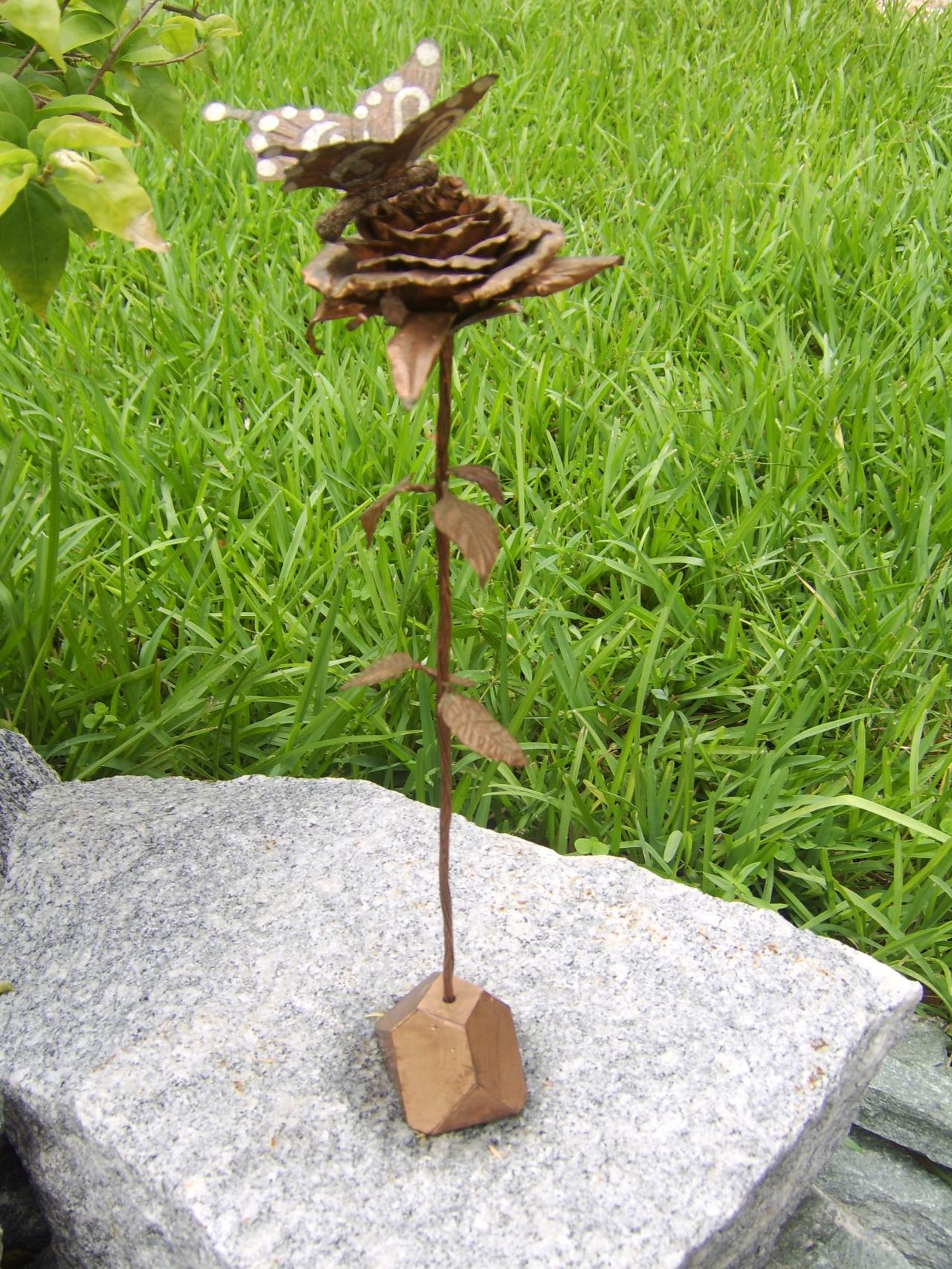 These copper rose's and butterflies are unique in design,they are cherished by whomever receives them. Made available upon request.